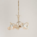 Hängebleuder in eisernen Elfenbein Gold Weiß weißes Glas fünf Leuchten 60x H47 cm