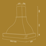 Haube aufstrebende Lalla in weißem Edelstahl und Holzrahmen Tabak 120 cm