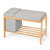 Schöne Mehrzweckbank in Bambusholz mit Lagerfach, Kissen und Regal für Schuhe.
