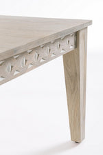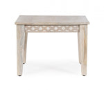 Mangoholz, Nitrocellulosemalerei mit hellen weißen Entschlüssen. Dekoration mit handgefertigten Inlays. Beine zu versammeln.