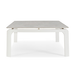 Die Tischplatte besteht aus Keramik, einem resistenten und hochwertigen Material. Die Keramik bietet eine langlebige und leicht zu reinigende Oberfläche, ideal für den Gebrauch im Freien. Die weiße Farbe verleiht dem Tisch ein helles und modernes Erscheinungsbild, das für verschiedene Möbelstile geeignet ist.