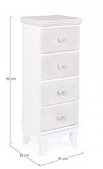 Kammerschublade in MDF vier Schubladen weiße Charlen 31x26x H90 cm