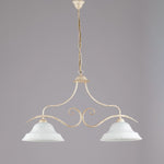 Klassischer eisernen Kronleuchter Elfenbein Gold weißes Glas zwei Lichter 85x H51 cm