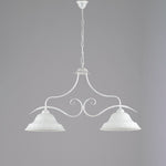 Klassiker weißer eisernen Kronleuchter silberweißes Glas zwei Lichter 85x H51 cm