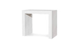 Audace Extendable Console Table mit vollständig in der Faltungsstruktur. Der Plan mit einer Dicke von 2,2 cm wird in weißer Lärchenfinish erstellt. Ausgestattet mit Metallleitfaden kann dieser Konsolentisch verlängert werden und hat zentrale Beine. Die Größe der Tabelle mit 5 50 cm -Verlängerungen ist von 50 cm bis 300 cm, einer Breite von 90 cm und einer Höhe von 76 cm einstellbar.