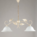 Hängebleuder in eisernen Elfenbein Gold zwei Leuchten weiß Alabaster Glas 93x H34 cm