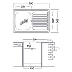 Gebaut -in Edelstahlspüle, die zur klassischen Linie gehört. Diese Spüle hat einen einzelnen Tank mit Tropfen auf der rechten Seite. Die Satinoberfläche verleiht ein elegantes und modernes Aussehen. Einschließlich 3einhalb Zoll von 3einhalb Zentimeter und einem Abgasschen mit einem Durchmesser von 50 mm. Mit einer Dicke von 0,50 mm ist diese Spüle resistent und langlebig. Es ist mit einem Loch für den Wasserhahn ausgestattet, um eine einfache Installation zu erhalten. Die Größe der Spüle beträgt 50 x 79 cm, während der Tank 350 x 400 x 1550 mm misst. Diese Spüle ist so konzipiert, dass sie sich an eine Garderobe von 45 cm Größe anpasst.
