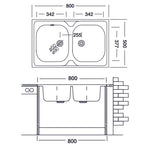 Küchenspüle Zwei Edelstahltanks 50x80 cm
