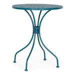 - Runder Stahltisch, der für die Outdoor (E-Beschichtung) und pulverbeschichtete (Polyester) mit undurchsichtigem Finish behandelt wurde;