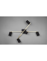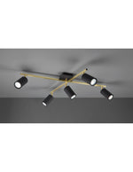Der Spotlicht Marley durch Trio -Beleuchtung Es verfügt über eine Metallstruktur, die aus doppelt goldfarbenen linearen Zauberstab und 5 orientierbare schwarz -hergestellte zylindrische Scheinwerfer besteht.