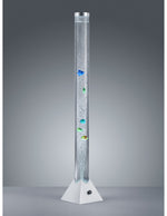 Die Lampe vom Boden Bewegung durch Trio -Beleuchtung Es besteht aus einer zylindrischen Kunststoffstruktur Titan -Finish und einem transparenten Kunststoffdiffusor, einem Drahtschalter. Innerhalb des zylindrischen schwimmenden Fischfisches.