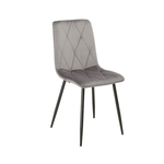 Mit seiner robusten Struktur und dem Velvet Effect -Stoffabdeckung bietet dieser Stuhl einen optimalen Komfort und Haltbarkeit. Die schwarzen Metallfüße verleihen dem Gesamtdesign einen Hauch von Modernität und Stabilität. Der Stuhl ist in grauer Farbe erhältlich, die sich leicht an jede Möbelstil anpasst.