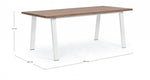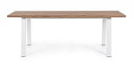 100%Acacia FSC Holzoberteil. Ölfinish. Warme verzinkte Stahlbeine und pulverbeschichtete (Polyester). Seitliche Lamellen in Originalstammabschnitten, die Formen und Maße sind nur ein Hinweis, alle Tabellen unterscheiden sich voneinander. Verzinkter Stahl Viper. Beine zu versammeln. Abmessungen in CM: 200 x 100 x 76H