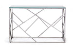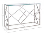 Die Struktur dieser Konsole besteht aus Edelstahl, der im Laufe der Zeit Robustheit und Haltbarkeit bietet. Das lineare und minimalistische Design passt sich leicht an verschiedene Möbelstile an.