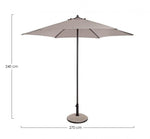 Der Regenschirmpol hat einen Durchmesser von Ø38 mm und die Struktur besteht aus 6 ovalen Lamellen mit Abmessungen von 10x18 mm, wodurch Stabilität und Widerstand auch unter windigen Bedingungen gewährleistet werden. Die Struktur ist pulverbeschichtet, um dauerhaften und unmperking resistenten Schutz zu gewährleisten.