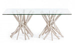 Bleichte Teakzweige mit einem natürlichen Finish. gehärtetes Glas.
