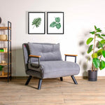 3 in einem: Sessel, Sessel mit Fußstütze und Einzelbett.