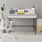 Schreibtisch Leila Bianco mit Anthrazit -Details mit schwarzen Metallschubladen und Füßen