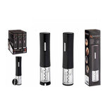 Der schwarze Elektrokorkenzieher ist ein perfektes Produkt für diejenigen, die ein funktionales und modisches Objekt in ihrem eigenen Zuhause haben möchten. Der Korkenzieher besteht aus Metall und Kunststoff und hat Abmessungen von etwa 5 x 23,7 x 5 cm und ist in schwarzer Farbe erhältlich. Dank seiner elektrischen Funktion können Sie Ihre Flaschen Wein schnell und einfach öffnen. Damit er zum Arbeiten kommt, werden nur 4 AA -Batterien benötigt, nicht enthalten. Kaufen Sie jetzt Ihren schwarzen Elektrokorkenzieher zum besten Preis!