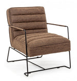 Sessel mit Armlehnen und Stahlstruktur und brauner Leder -ähnlicher Beschichtung