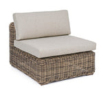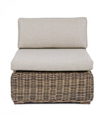 Sessel mit Koralinenkissen im Freien
