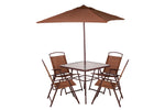 6pz Gartenset mit 4 Stühlen, Tisch und braunem Regenschirm