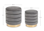 Abmessungen Pouf G: Durchmesser: 40 cm Höhe: 44 cm; POUF -Abmessungen P: Durchmesser: 36 cm Höhe: 38 cm