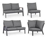Der Set4 Angular Lounge C-C Jacob Antrjx55 Es bietet Komfort und Stil für Ihren Außenbereich. Die Struktur besteht aus Aluminiumbemaltpulver (Polyester), die Dauer und Resistenz gegen atmosphärische Mittel garantieren.