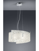 Die Federung Signa di Trio -Beleuchtung Es hat ein rundes Rosenfenster und einen Lautsprecher, der aus 3 weißem Glas mit Unterschriften verziert ist.