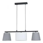 Die Federung Almeida Marke Eglo Es präsentiert ein Profil mit Metallbilanzschwarz -Finish mit 3 Stofflautsprechern mit verschiedenen Formen und Abmessungen aus weißer und anthrazitfarbener Farbe.
