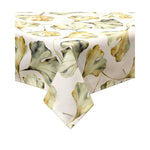 Mit dem textilen Ginko ist die Tabelle in heißen Tönen gefärbt. Diese Tischdecke, ideal für einen Tisch für 6 Personen, im fleckresistenten Polyester hat eine weiße Basis mit Blättern. Dieselbe Linie besteht aus Tischdecken unterschiedlicher Größen, Läufer und Textilzubehör für die Küche.