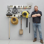 Organizer für Werkzeuge, mit denen alle Werkzeuge, Elektro -Helpments, Gartenzubehör und alles, was Ihre Garage enthält, in Ordnung ist. Vollständig anpassbares und integriertes System, da es möglich ist, viele Zubehör und andere Tracks hinzuzufügen.