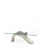 Tabelle (110 x 60 - transparent) - wo - Materialien: Oben: Glänzendes Glasglasglas Beine / Basis: Weißer Agata Fossilstein Beinstruktur: Sea Sea Marino FARBEN: Transparentes Glas Beine / Basis: Beige Maße: 60 cm x 110 cm H. 40 cm