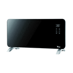 Schwarzer Heizplatte mit einer reduzierten Dicke und einem modernen Design mit einer Basis für die Tisch- oder Bodenpositionierung ist ideal für die Integration einer vorhandenen Zentralheizung in Punkten des Hause Ein System zentralisiert es ist nicht existent.