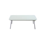 - Eine rechteckige Tabelle von CM.99X59XH36, mit weißem, geschmittertem Glas 5 mm dick.