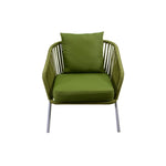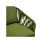 Gartenlounge Visalia -Modell mit Aluminiumstruktur aus weißem bemaltem Pulver, Armlehrebeschichtung und Rücken mit grünen Seil.