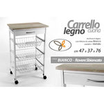 Weißer Küchenwagen mit Körben und Rädern 47 x 37 x 76 h cm cm Holzküchenwagen mit bequemen Rädern, um ihn nach Belieben zu bewegen. Abnehmbare Metallkörbe, Eichenoberfläche 47 x 37 x 76 h cm