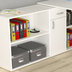 Der weiße reversible Schreibtisch mit 4 Fächern ist ein vielseitiges und funktionales Element für Ihren Arbeitsbereich. Es kann entweder als eckiger Schreibtisch rechts oder links oder als linearer Schreibtisch montiert werden, der Ihnen maximale Flexibilität bietet.