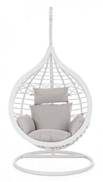 Weißer suspendierter Sessel mit synthetischer Faserkissen