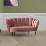 Zwei -Seerer -Orel -Sofa im alten rosa Samt mit schwarzer Schale und Füßen ist ein elegantes Möbelstück, das Ihrem Wohnraum einen Hauch von Verfeinerung verleiht. Mit seinem einzigartigen Design in Form einer Schale und der schwarzen Eisenfüße wird dieses Sofa die Aufmerksamkeit aller Gäste auf sich ziehen.